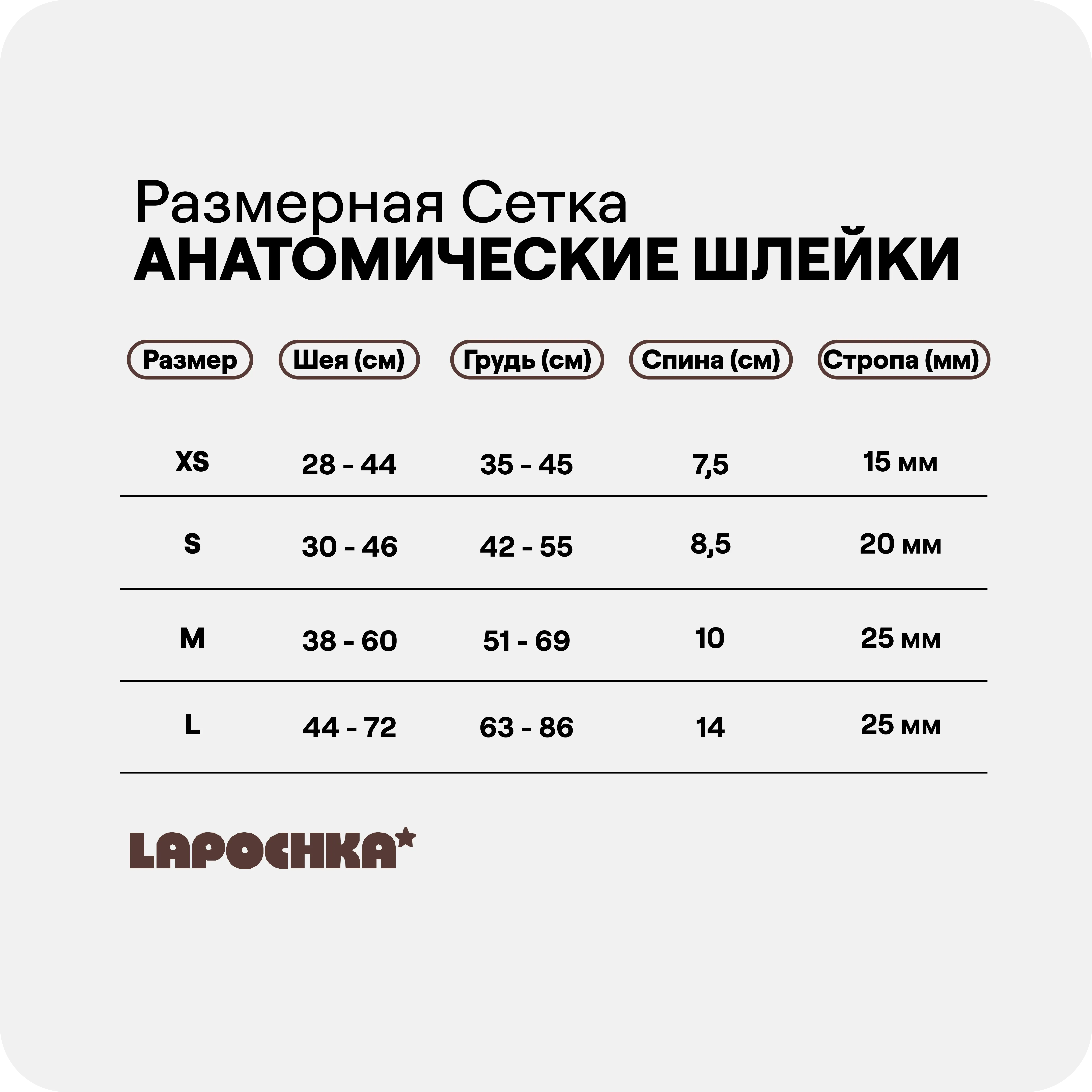 | Анатомически правильная форма Каждая шлейка Lapochka создана с учётом анатомии собаки. Y-образная форма не сковывает движения и равномерно распределяет нагрузку по корпусу, обеспечивая комфорт даже при активных прогулках. Пять точек регулировки позволяют добиться идеальной посадки для любой собаки. |