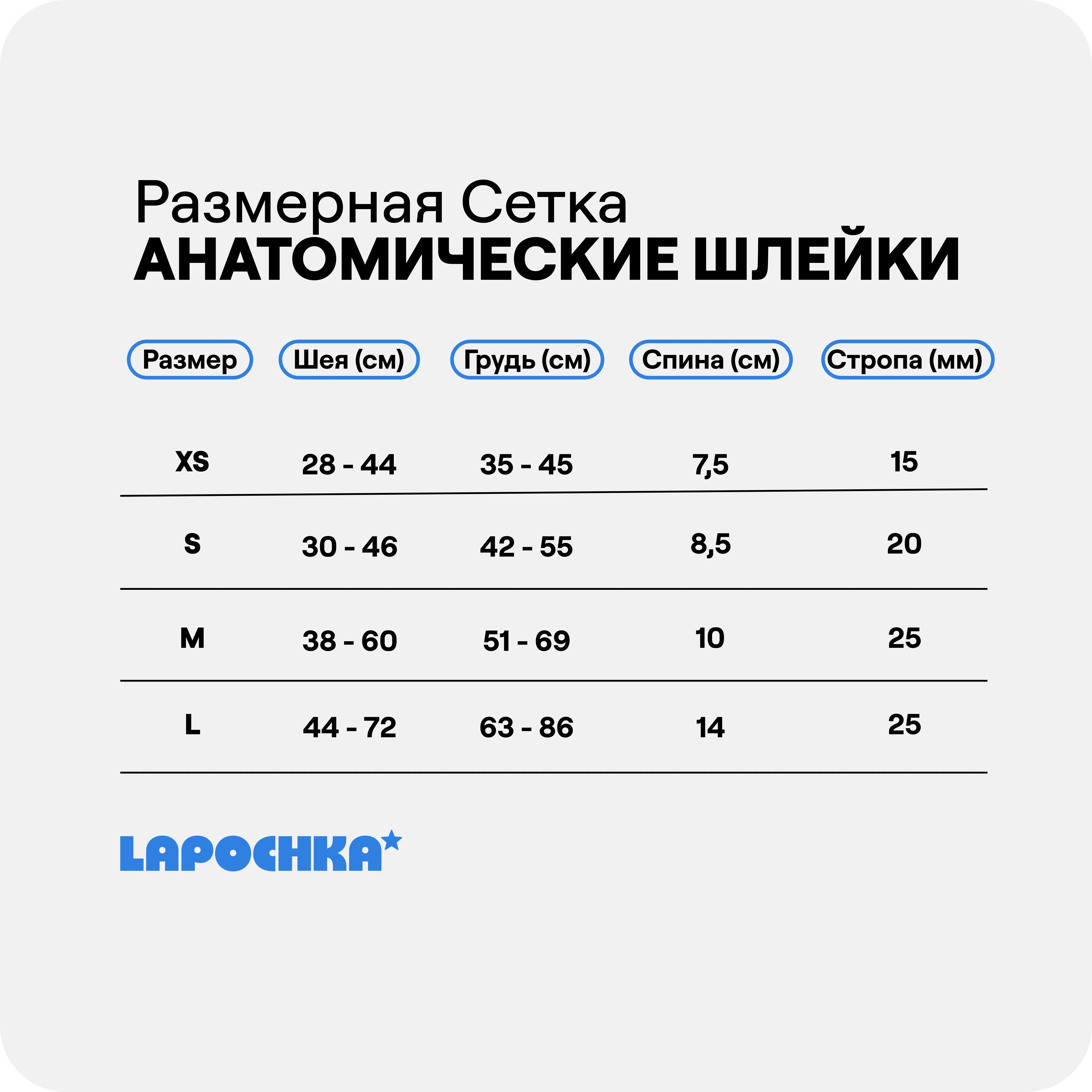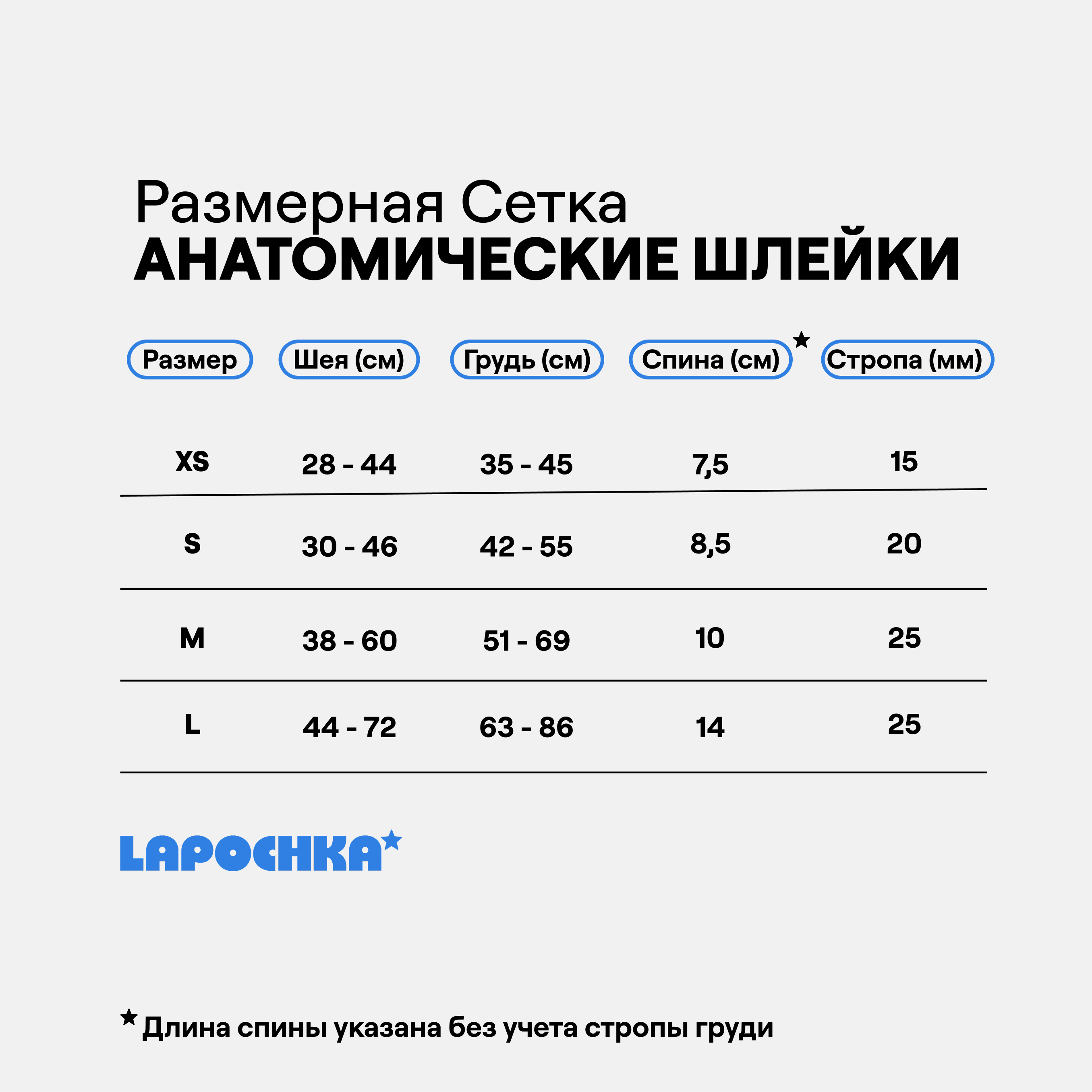 | Анатомически правильная форма Каждая шлейка Lapochka создана с учётом анатомии собаки. Y-образная форма не сковывает движения и равномерно распределяет нагрузку по корпусу, обеспечивая комфорт даже при активных прогулках. Пять точек регулировки позволяют добиться идеальной посадки для любой собаки. |