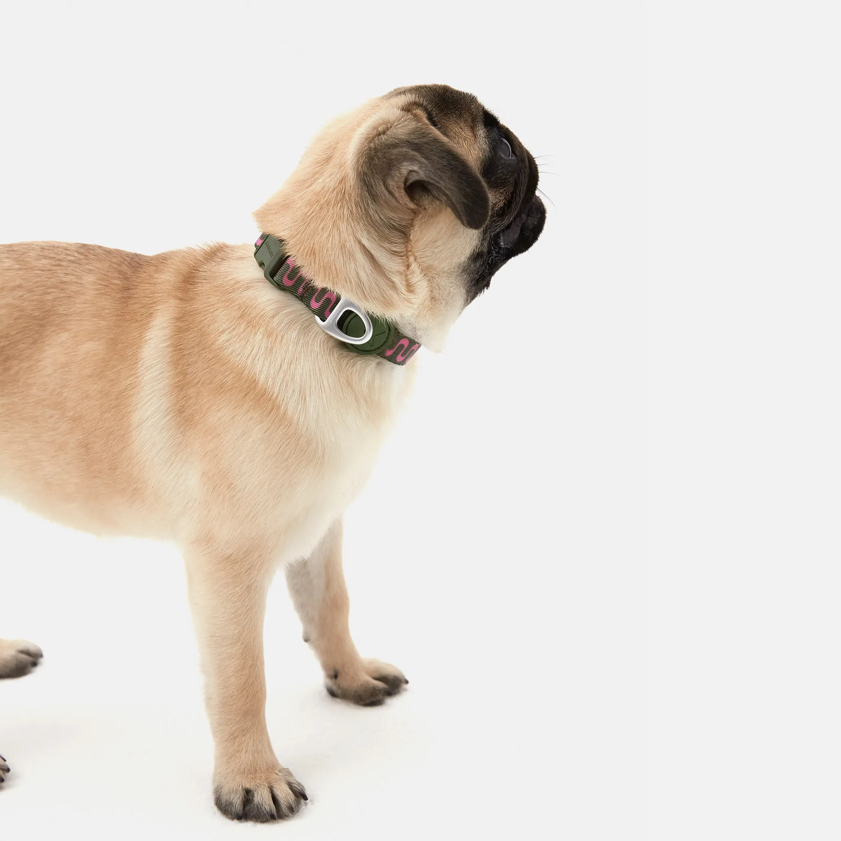 На наших ошейниках установлен силиконовый держатель-шлёвка — он надёжно фиксирует стропу, чтобы посадка ошейника оставалась идеальной даже во время самых активных прогулок.